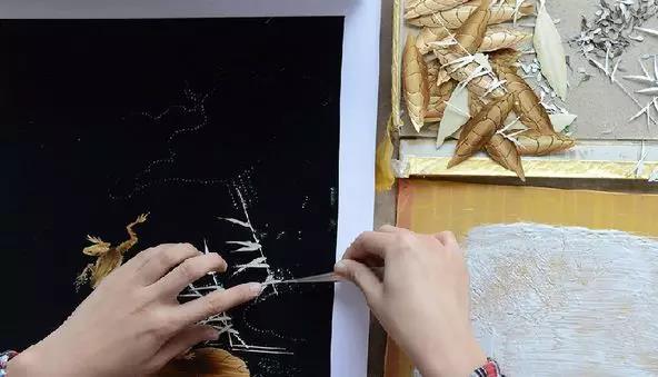 手工藝人在制作蘆葦畫(huà)。新華網(wǎng)王立鵬攝