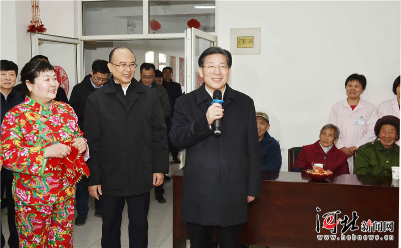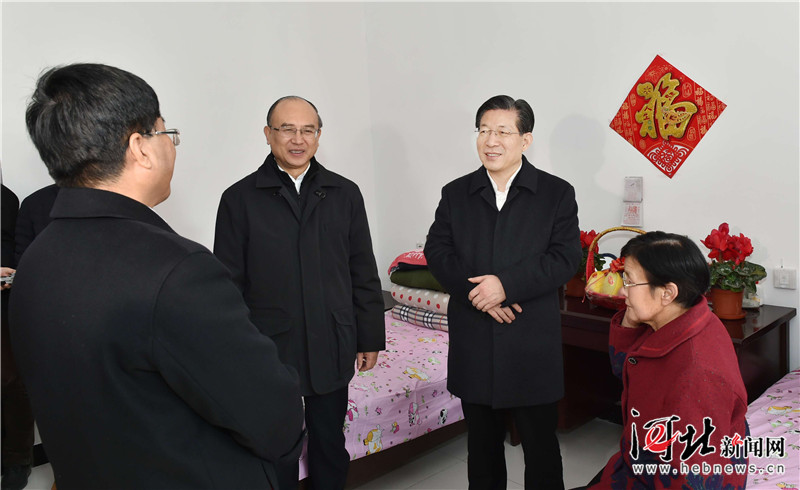 2月16日,省委書記、省人大常委會(huì)主任王東峰,省委副書記、省長(zhǎng)許勤走訪慰問敬老院老人和部隊(duì)干休所離退休老干部,向他們致以新春的問候。這是王東峰、許勤在駐冀某部干休所看望慰問離退休老干部。 記者趙威攝