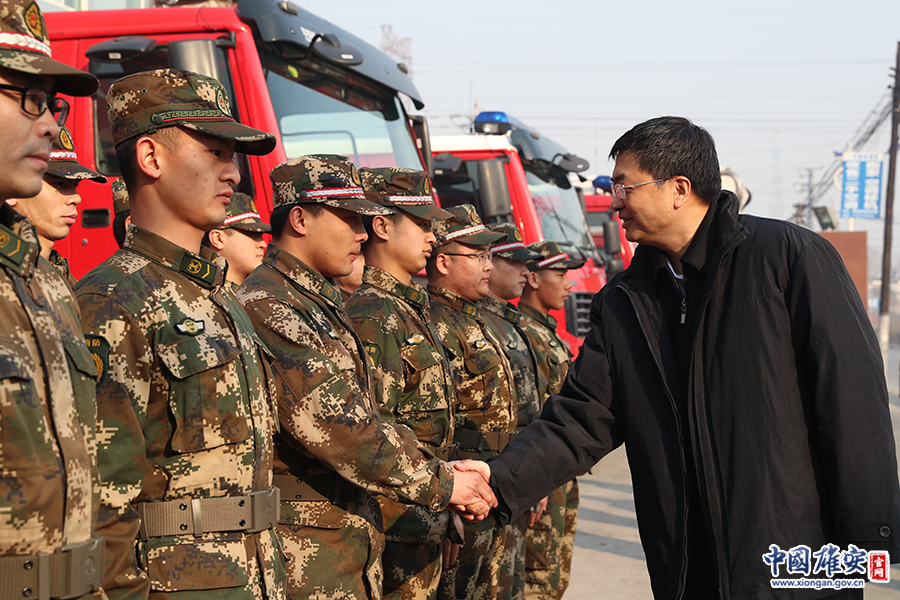 圖為陳剛在容城縣消防大隊(duì)看望慰問(wèn)一線官兵。毛鶴然/攝