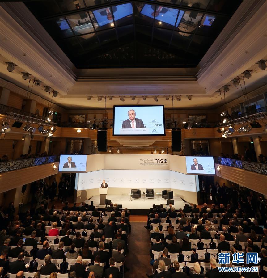2月16日,聯合國秘書長古特雷斯在德國慕尼黑出席第54屆慕尼黑安全會議(慕安會)時發言。第54屆慕安會16日在德國南部城市慕尼黑開幕。中東地緣危機、軍備控制、朝核問題等成為會上各方關注重點。 新華社記者羅歡歡攝
