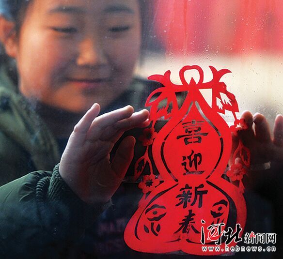 在雄安新區,窗欞上貼上剪紙“迎春葫蘆”是當地的傳統年俗。