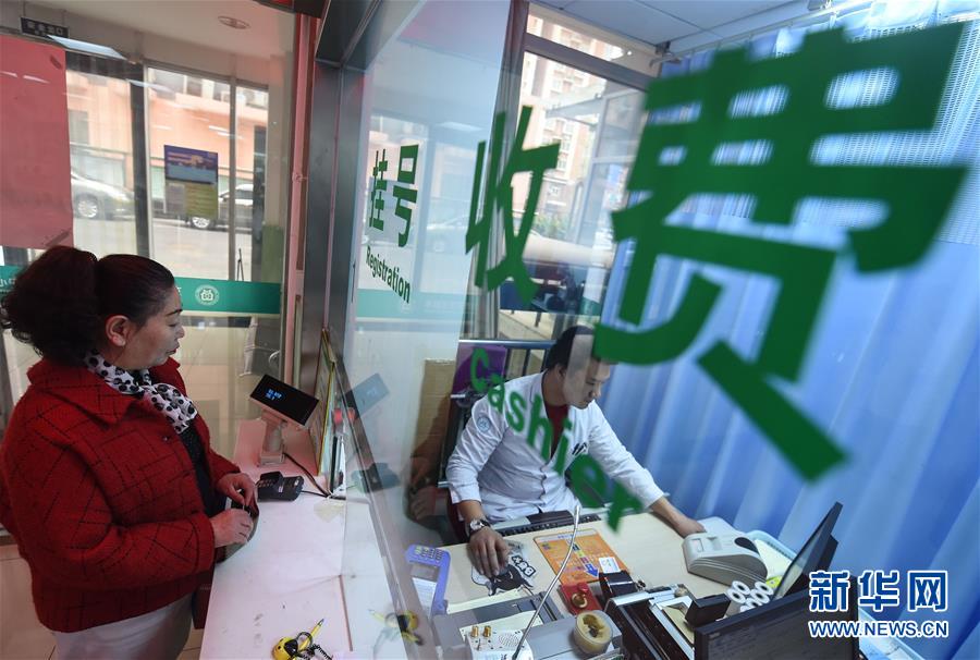 一名市民在北京東花市社區(qū)衛(wèi)生服務(wù)中心掛號(hào)交錢(2017年4月8日攝)。北京“醫(yī)藥分開”綜合改革當(dāng)日正式在3600余家醫(yī)療機(jī)構(gòu)實(shí)施。新華社記者 羅曉光 攝