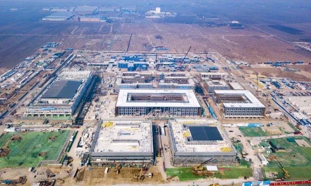 2月18日雄安市民服務中心項目建設現場鳥瞰圖。