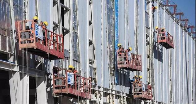 目前,施工現場正如火如荼地建設,8個單體同時施工,會議中心等7棟單體進入了裝飾裝修階段,企業臨時用房進入集成房屋大面積吊裝階段。