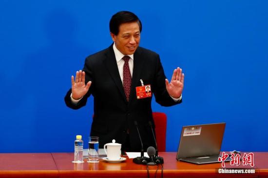十三屆全國人大一次會議于3月4日上午11時在人民大會堂新聞發布廳舉行新聞發布會。大會發言人張業遂回答中外記者的提問。中新社記者 富田 攝