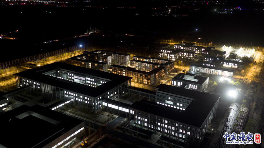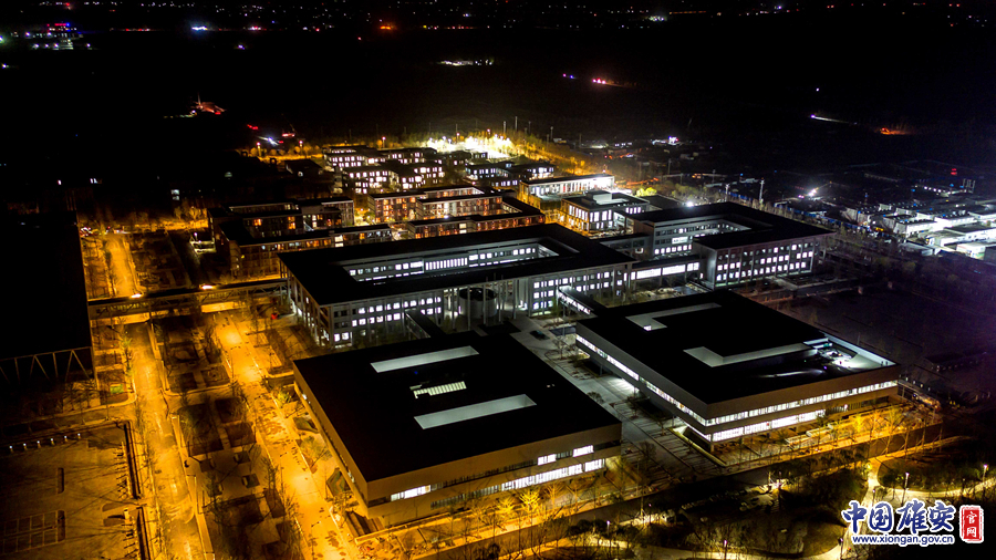 雄安市民服務(wù)中心建筑多以三層為主,最高的也只有五層,建筑分布呈現(xiàn)三縱三橫格局。圖為雄安市民服務(wù)中心夜景。記者毛鶴然 攝?