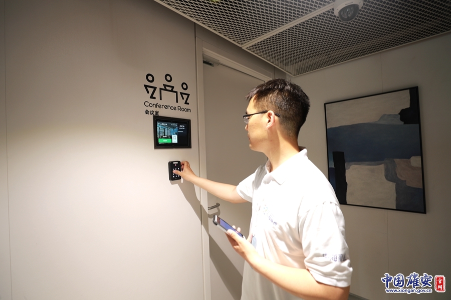 聯(lián)合辦公區(qū)位于雄安市民服務(wù)中心最北側(cè)的B單元,建筑面積3775.36平米,記者探訪發(fā)現(xiàn),辦公區(qū)給人的感覺清新脫俗、科技含量高,它集成了人臉通行,數(shù)字化管理、辦公室會(huì)議室共享預(yù)定、共享打印、會(huì)議無線投屏等功能,下載APP可以一鍵預(yù)定會(huì)議室,門禁還使用手機(jī)搖一搖開門技術(shù),增加了用戶與辦公場(chǎng)景的互動(dòng)。