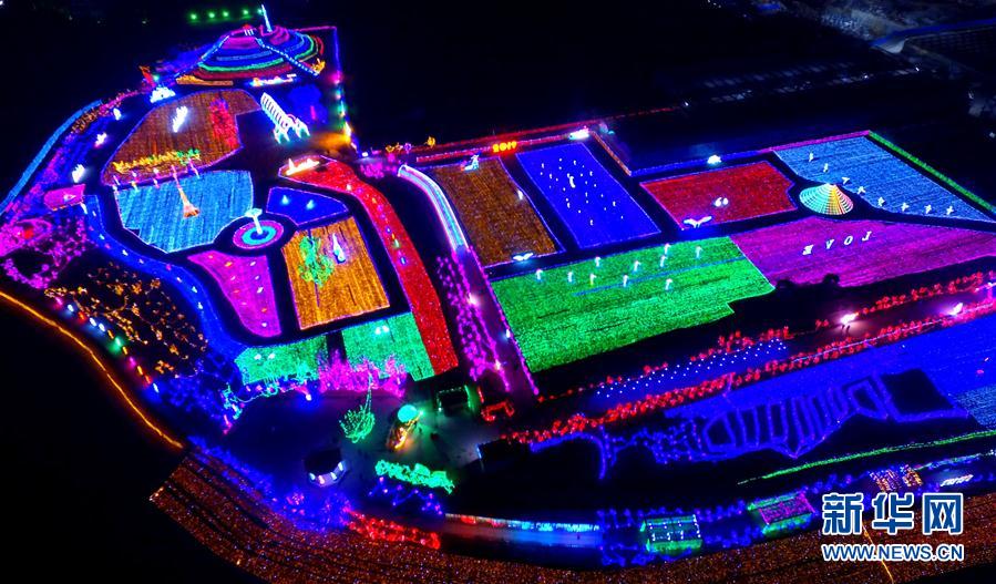 這是12月31日在河北省邯鄲市拍攝的“跨年迎春”燈展(無人機拍攝)。新年小長假期間,各地舉辦迎春燈展活動,喜迎新年。新華社記者王曉攝
