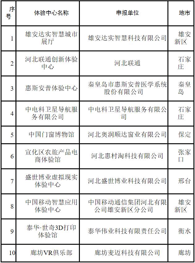 按照省“大智移云”發展領導小組辦公室印發的《關于組織申報河北省第一批信息消費體驗中心的通知》(冀大智移云辦〔2018〕4號)要求,通過各市工信部門篩選上報、專家評審、廳務會研究等規定程序后,擬認定10個河北省第一批信息消費體驗中心。現將有關情況進行公示,請社會各界對項目及承擔單位真實性進行監督。有關意見、建議請于2019年1月23日17:00前以書面形式告知我辦。