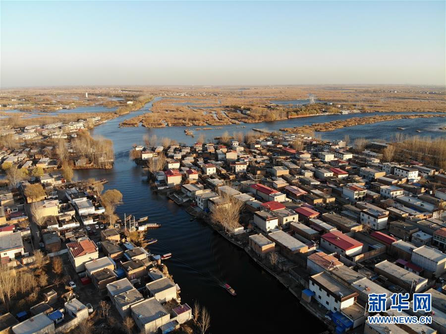 雄安新區白洋淀上的村莊(2018年12月6日無人機拍攝)。新華社記者邢廣利 攝