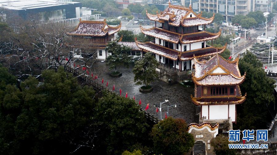 當日,湖南長沙市迎來一場降雪,古城樓天心閣在白雪的覆蓋下顯得靜謐雅致。