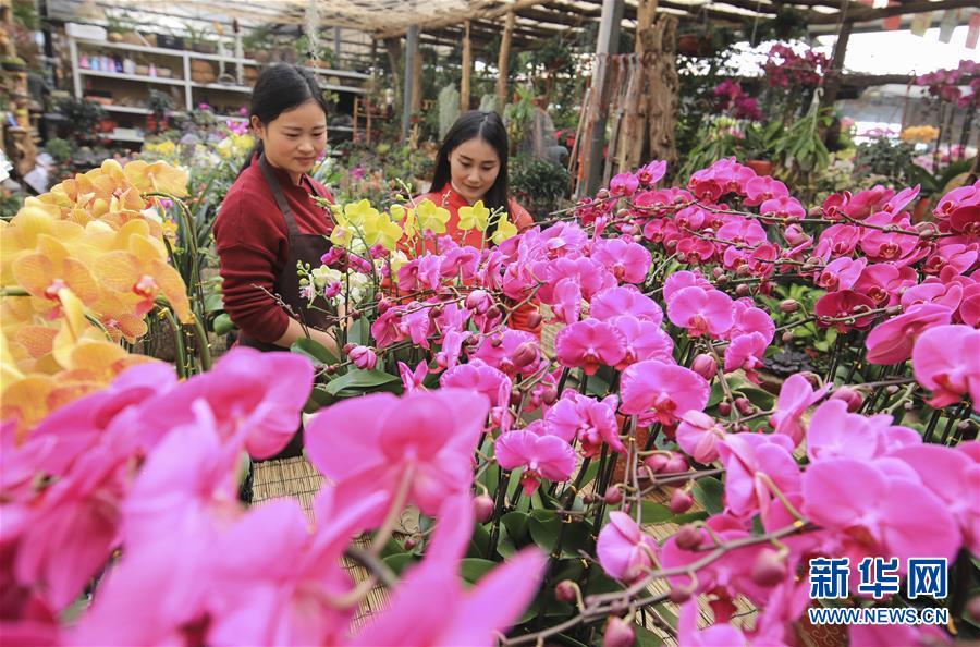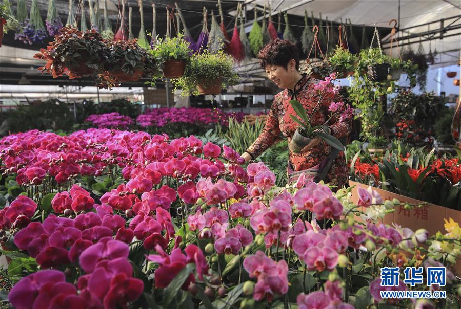 1月17日,河北省遵化市興旺寨鄉(xiāng)何家峪村農(nóng)民在大棚內(nèi)管護(hù)花卉。春節(jié)臨近,各地花卉種植大棚、花卉銷售市場內(nèi)一片姹紫嫣紅,洋溢著濃濃的年味。新華社發(fā)(劉滿倉 攝)