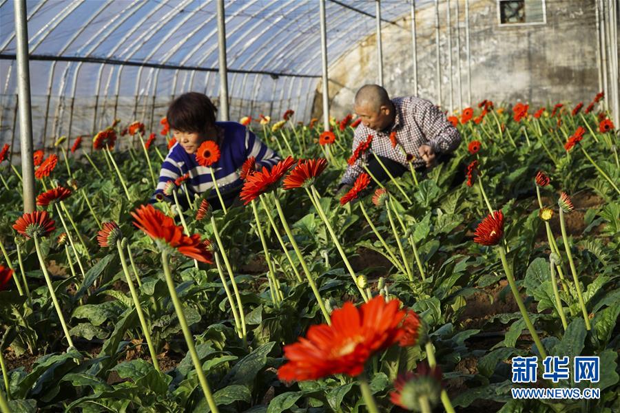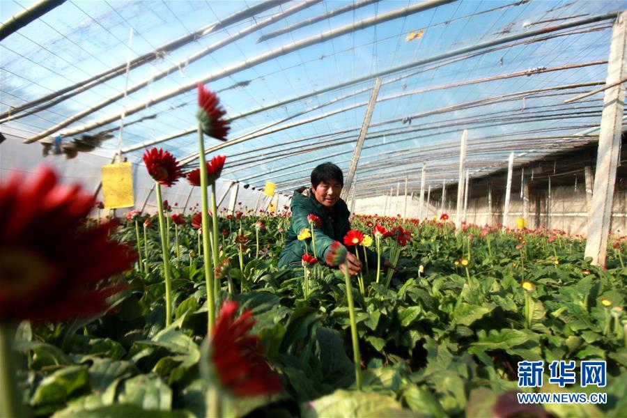 1月17日,在山東省臨沂市平邑縣利溝村,種植戶在大棚里采摘花卉。春節(jié)臨近,各地花卉種植大棚、花卉銷售市場內(nèi)一片姹紫嫣紅,洋溢著濃濃的年味。新華社發(fā)(武紀(jì)全 攝)