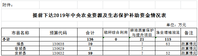 現將雄安新區提前下達2019年中央農業資源及生態保護補助資金預算資金分配結果予以公告,如有異議,請向以下部門提出意見。