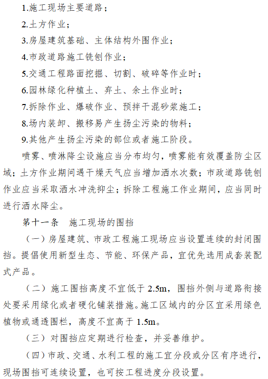 該辦法涵蓋了建筑工程、裝飾裝修工程、市政工程、水利工程、交通工程、園林綠化工程各專業;管理范圍包括施工現場的圍擋、硬化綠化、施工現場車輛沖洗設施、物料碼放、垃圾處理、渣土運輸的全過程;明確了全鏈條的管理責任,建設單位負總責,監理單位負監督責任,施工單位為責任主體的管理體系。
