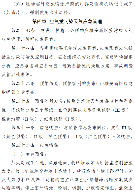 該辦法落實《河北雄安新區規劃綱要》和《河北雄安新區總體規劃》要求,著力提高和改善大氣環境質量,構建過程全覆蓋、管理全方位、責任全鏈條的建設施工揚塵治理體系,提高文明施工水平。