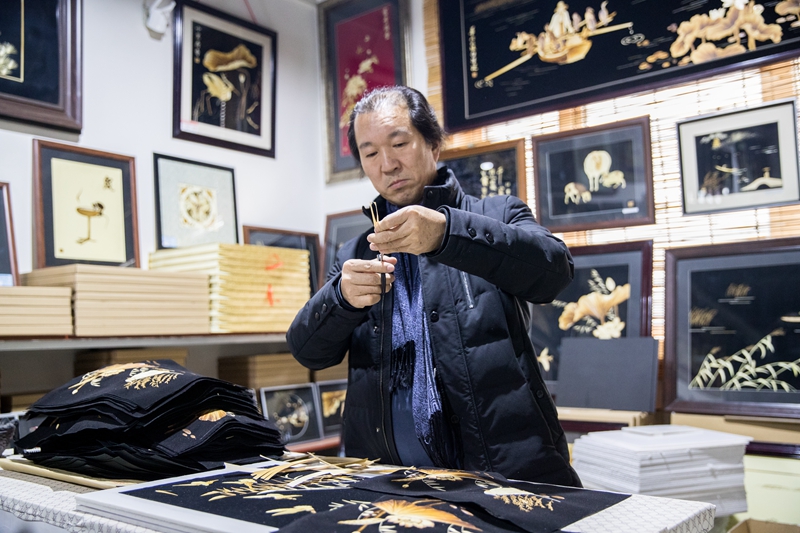 楊丙軍自小跟母親學習葦席編織技術,對制作蘆葦畫產生興趣,16歲到中央美術學院插班學習美術基礎知識,學成回鄉后開始創作蘆葦畫,這一晃就與蘆葦畫結緣30多年。