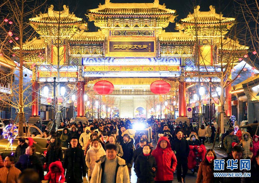 2月9日,游客在石家莊市正定古城夜游。 春節(jié)期間,河北石家莊正定古城吸引各地游客前來觀光游覽,感受濃濃的年味兒。近年來,石家莊正定縣通過恢復古城風貌、提升產業(yè)水平以及實施文化資源與旅游資源整合的方式,打造古城文化品牌,使旅游產業(yè)成為該縣支柱型產業(yè)。新華社發(fā)(張海強 攝)