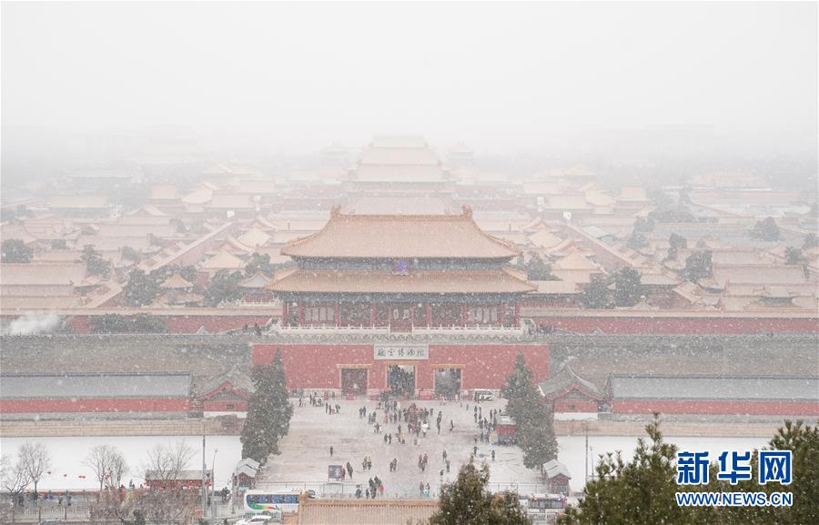 這是2月12日拍攝的故宮雪景。 2月12日,北京降雪,大批游人來到故宮游覽賞雪。新華社記者才揚攝