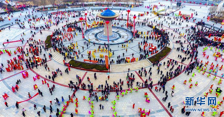 這是河北省阜城縣花會展演現場(2月18日攝)。 2月18日,河北省阜城縣元宵花會展演拉開帷幕,秧歌、舞龍、舞獅等展演節目增添了節日的喜慶氣氛,給全縣人民送上“文化大餐”。新華社記者李曉果攝