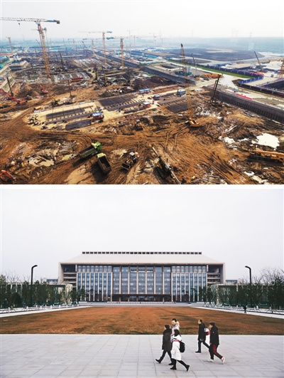 上圖:2016年9月,建設中的北京城市副中心行政辦公區。