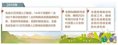 意見提出,2019年完成33萬貧困人口脫貧、1448個貧困村(含382個新識別貧困村)出列和剩余貧困縣摘帽任務,實現所有貧困縣、貧困村脫貧退出,全面完成全省13.59萬貧困人口易地扶貧搬遷任務;全面完成脫貧攻堅任務,確保2020年現行標準下農村貧困人口全部脫貧;全面統籌脫貧和防貧工作,確保建立形成穩定脫貧和可持續發展的長效機制。