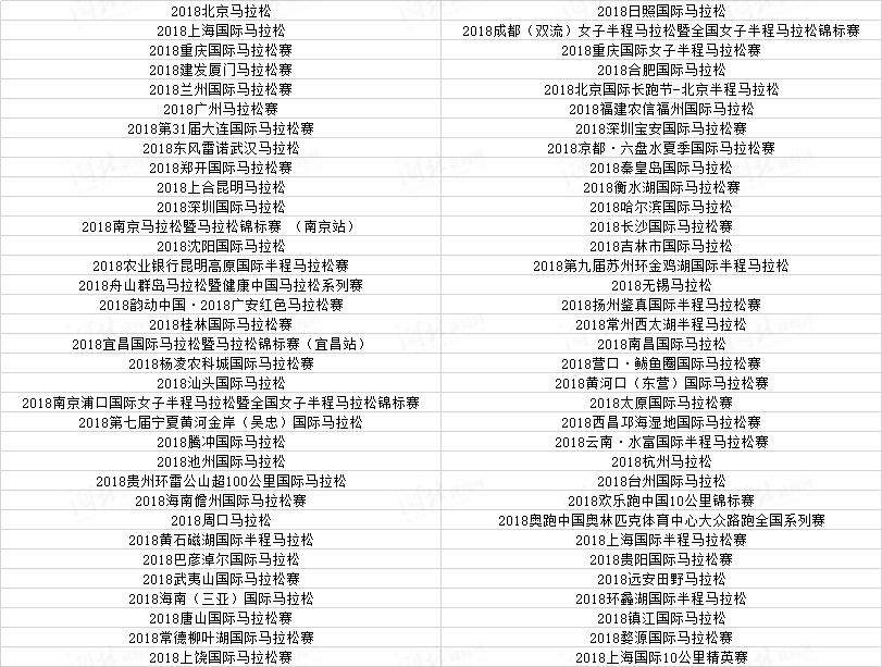 河北省被評為2018中國田徑協會金牌賽事的分別是2018唐山國際馬拉松賽獲、2018秦皇島國際馬拉松、2018衡水湖國際馬拉松賽;被評為2018中國田徑協會銀牌賽事的分別是2018雄安馬拉松、2018河北淶水野三坡國際半程馬拉松賽暨健康中國馬拉松系列賽、2018小康之約崇禮半程馬拉松、2018石家莊(正定)國際馬拉松賽。此外,河北省2018河間詩經國際馬拉松大賽和幽州古道2018超級越野賽被評為2018中國田徑協會銅牌賽事。