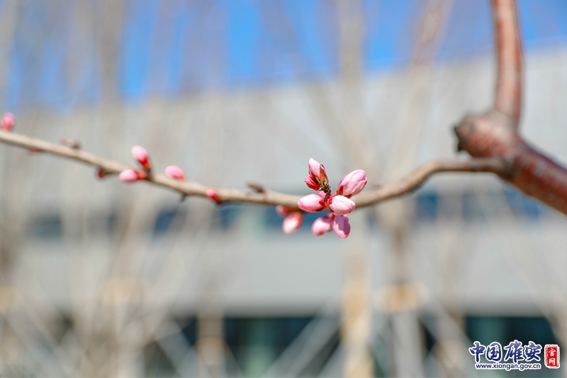 雄安市民服務中心里,枝頭的花朵正開放。中國雄安官網記者王京卓 攝