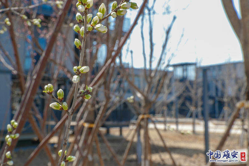 雄安市民服務中心里,枝頭的花朵含苞待放。中國雄安官網記者王京卓 攝