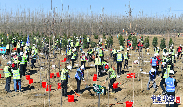 日前,容城縣南張鎮小北張村村東一派忙碌的植樹景象,這里正是雄安新區2019年植樹造林項目(春季)第七標段現場。新區黨工委、管委會領導及各個部門、三縣縣級領導、雄安集團、新區參建企業和容城志愿者代表300多人揮鍬培土、堆起圍垅、澆水扶苗……以實際行動踐行著雄安新區生態優先、綠色發展的理念。