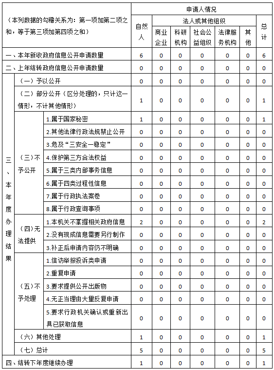 本報告依據《中華人民共和國政府信息公開條例》(以下簡稱《條例》)規定編制,全文包括總體情況、主動公開政府信息情況、收到和處理政府信息公開申請情況、政府信息公開行政復議及行政訴訟情況、存在的主要問題及改進情況等內容。報告所列數據統計期限為2019年1月1日至2019年12月31日。