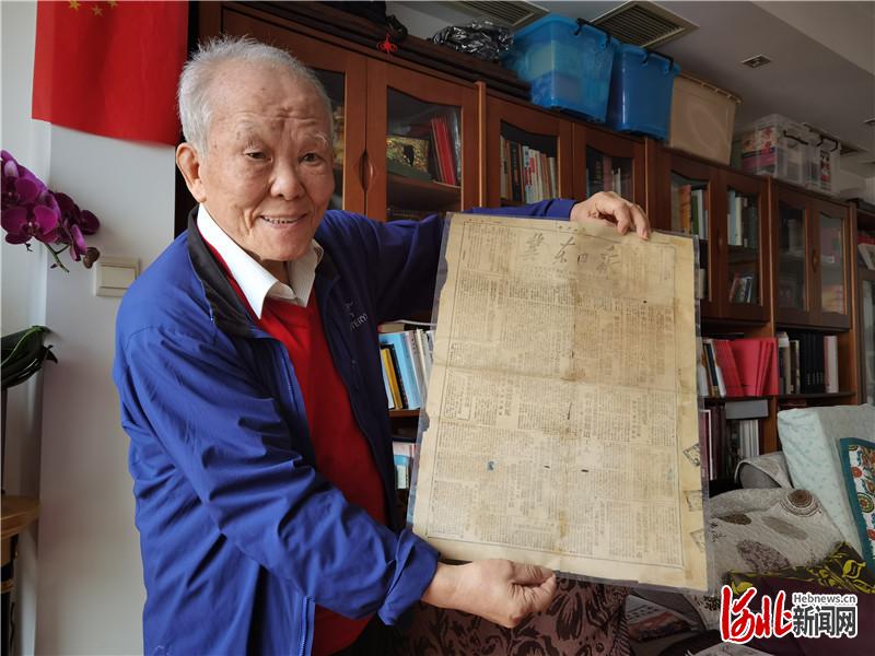 在冀東南下干部路福貴家中,老人展示一張1949年5月21日出版的《冀東日報》。 河北日報記者王育民 攝