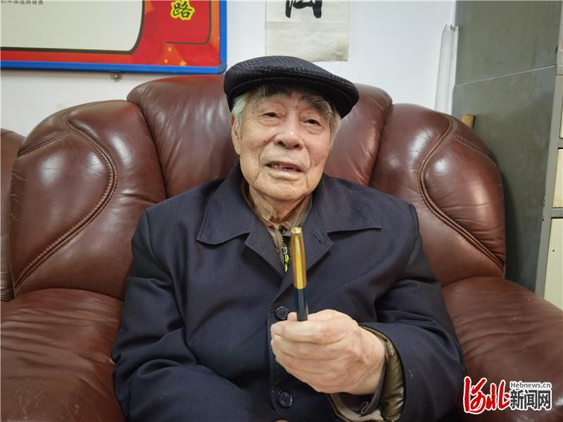 在湖南省長沙市,年近90歲朱靜軒展示一支“金色帽”鋼筆。這支鋼筆是他南下到湖南獲得的第一份榮譽。河北日報記者王育民 攝