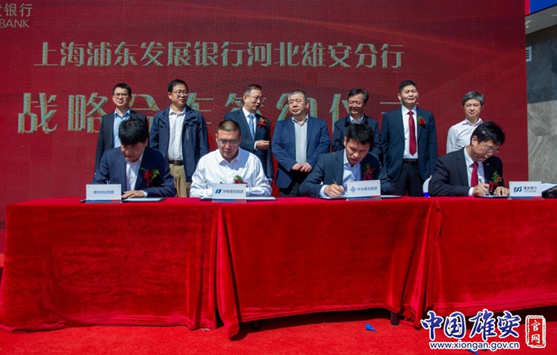 當天,上海浦東發展銀行河北雄安分行與中國移動通信集團河北有限公司雄安新區分公司、中交雄安融資租賃有限公司、中交雄安產業發展有限公司、中國華電集團雄安能源有限公司、河北雄安潤設建設發展有限公司簽署了戰略合作協議。