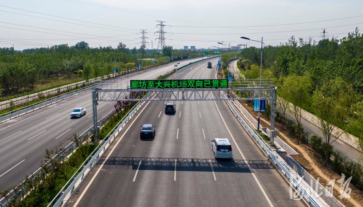 2021年5月17日12時,北京大興國際機場北線高速公路廊坊段與北京東延段正式聯通。今后,從廊坊市區開車去北京大興國際機場有了新路線,沿著廊坊市區藝術大道上機場北線高速公路,20分鐘即可直達北京大興國際機場。河北日報記者田明攝影報道