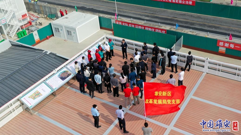 在項目現場,雄安新區改革發展局黨支部開展了“上黨課、講黨史”活動,讓黨旗飄揚在項目一線,以實干促學習,把黨史學習同總結經驗、參照現實、推動“五新”工作目標結合起來,以昂揚的奮斗姿態高標準高質量建設雄安新區,為慶祝中國共產黨成立100周年交一份滿意的答卷。