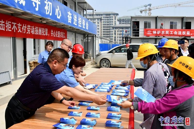 活動現場,雄安新區公共服務局通過發放《條例》手冊、宣講政策、答疑釋惑、張貼欠薪線索反映平臺二維碼等方式,督促各類企業用人單位合法用工,自覺履行工資支付主體責任,引導農民工依法維權。