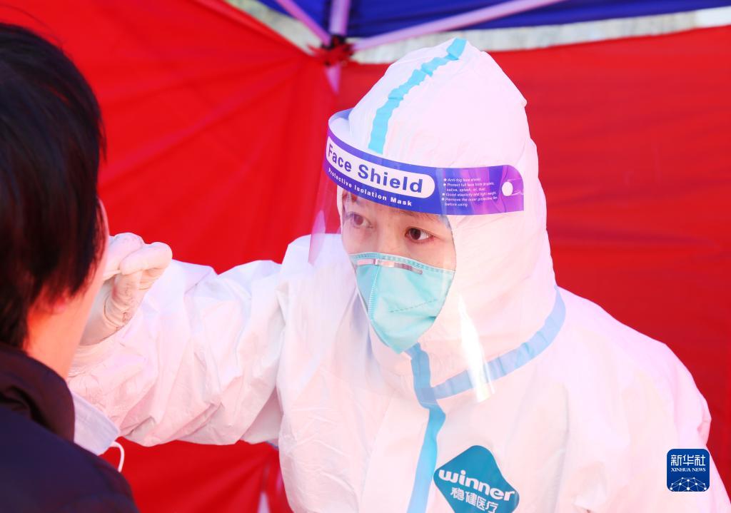 2月20日,在江蘇省蘇州市姑蘇區(qū)一核酸檢測采樣點(diǎn),工作人員為市民進(jìn)行核酸檢測采樣。蘇州有序開展區(qū)域核酸檢測,2月20日6時(shí)至15時(shí),全市累計(jì)采樣583.65萬人份。持續(xù)排查管控重點(diǎn)人群,截至20日15時(shí),累計(jì)追蹤排查在蘇州密接者6518人,次密接者10391人,其他風(fēng)險(xiǎn)人群71708人,已全部采樣進(jìn)行核酸檢測。新華社發(fā)(朱桂根 攝)