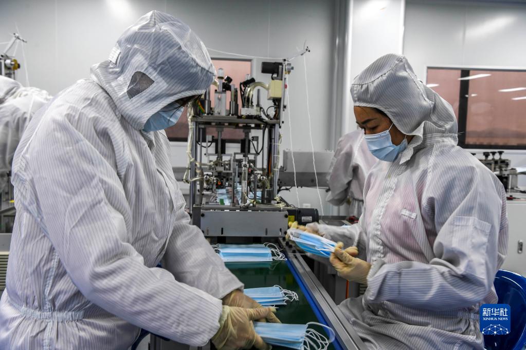 2月18日,在廣西百色市一家口罩生產(chǎn)企業(yè)內(nèi),工作人員在生產(chǎn)線上忙碌。自2月15日零時(shí)起,廣西百色市部分縣(市、區(qū))解除“不進(jìn)不出”管控措施,當(dāng)?shù)卣行驈?fù)工復(fù)產(chǎn)。2月17日0時(shí)至24時(shí),百色市無新增本土確診病例。新華社記者曹祎銘 攝