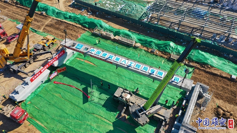項目施工現(xiàn)場,第一根預(yù)制箱梁已完成安裝。中國雄安官網(wǎng)高盟 攝