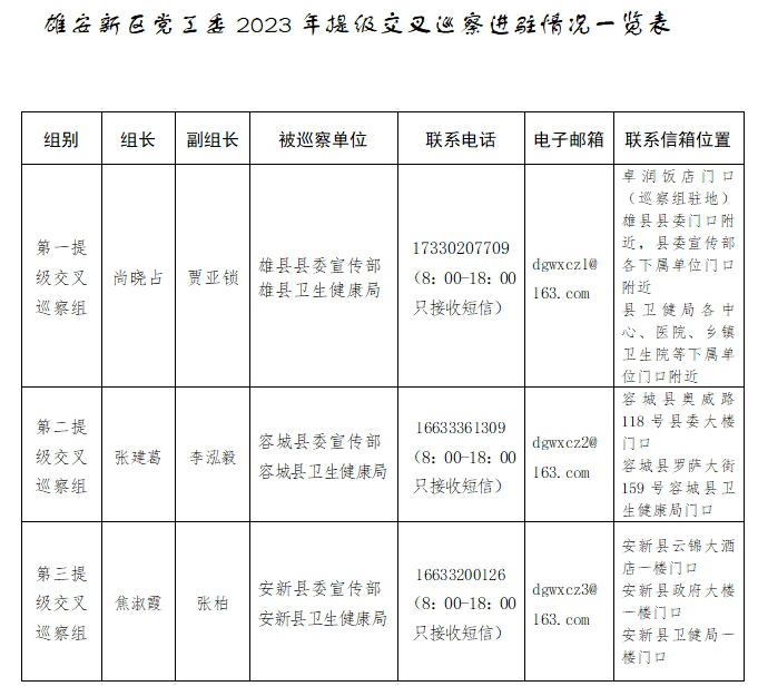 雄安新區黨工委2023年提級交叉巡察完成進駐