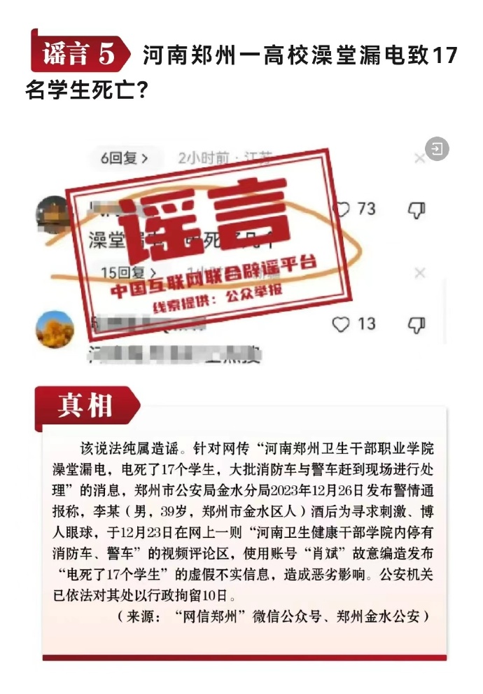 打擊網(wǎng)絡(luò)謠言 共建清朗家園 中國(guó)互聯(lián)網(wǎng)聯(lián)合辟謠平臺(tái)2023年12月辟謠榜
