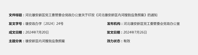 河北雄安新區黨工委管委會黨政辦公室關于印發《河北雄安新區內河搜救應急預案》的通知