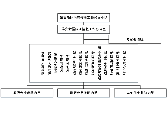 雄安新區綜合執法局:負責協調特種設備技術機構給予水上搜救所需特種設備的技術指導;維護內河應急救援現場通航秩序;根據需要組織行業有關單位船舶參加內河搜救應急反應行動。