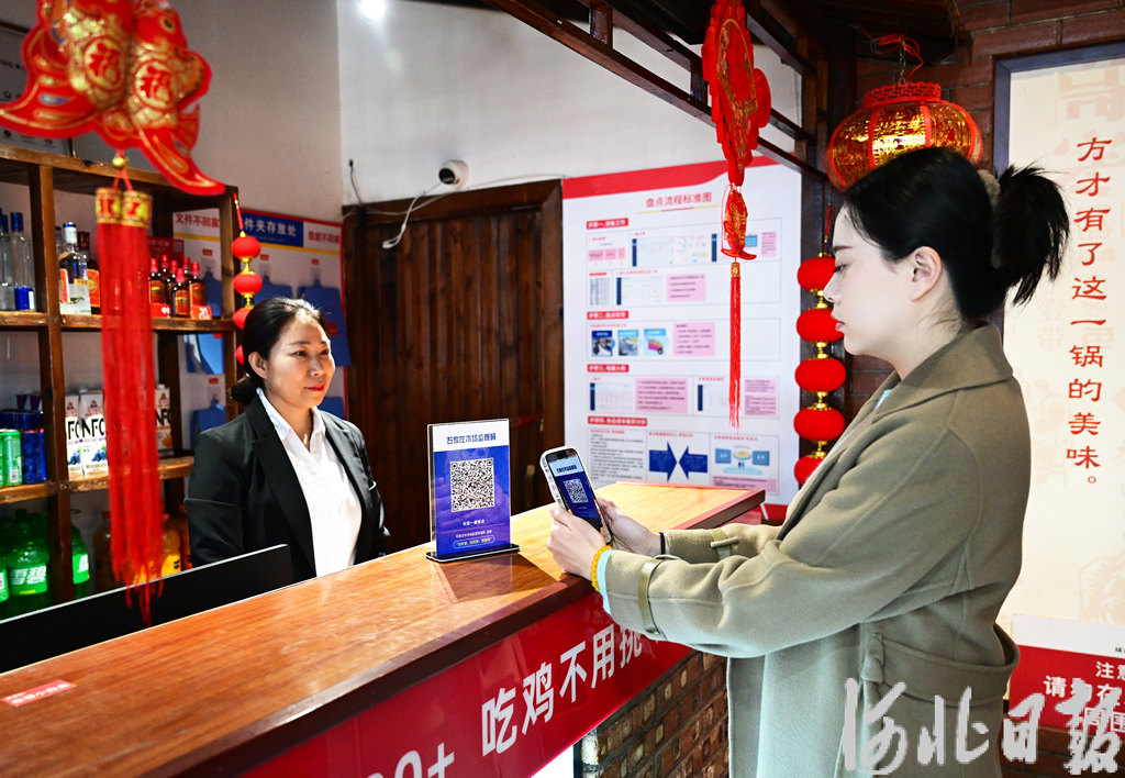 2月5日,市民在石家庄市长安区一家饭店内,扫描柜台前的“石监码”。河北日报记者李东宇 摄