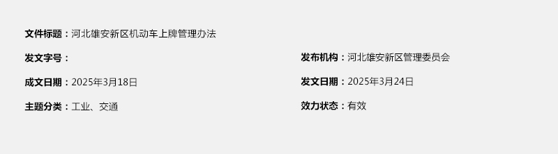 河北雄安新区机动车上牌管理办法