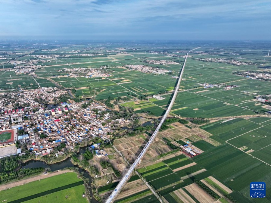 河北省清河县境内的雄商高铁建设现场(4月27日摄,无人机照片)。新华社记者牟宇 摄