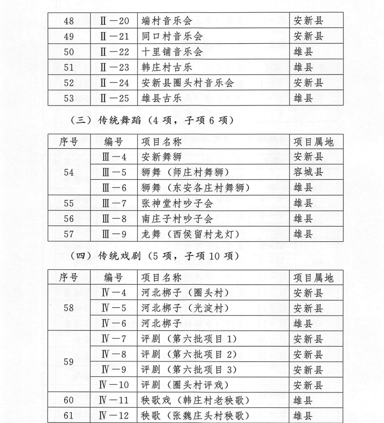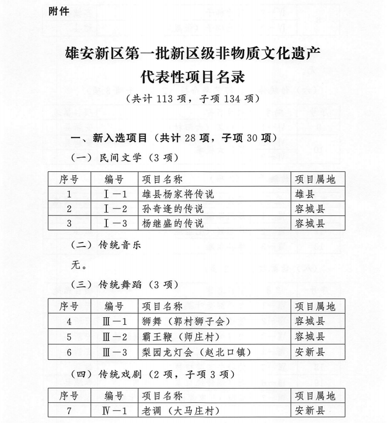 附件:雄安新区第一批新区级非物质文化遗产代表性项目名录