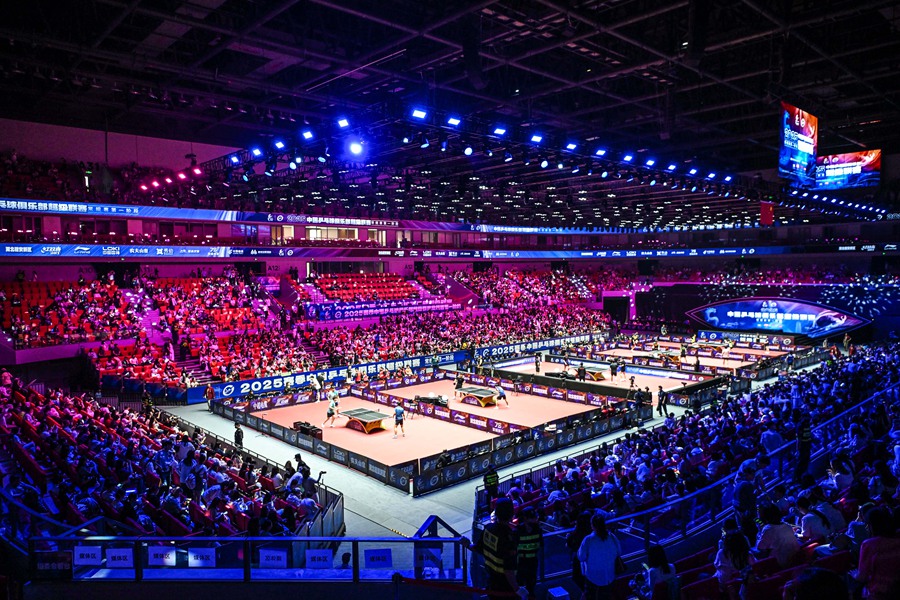 2025中国乒乓球俱乐部超级联赛常规赛第一阶段比赛现场。雄安媒体中心王伟倩 摄