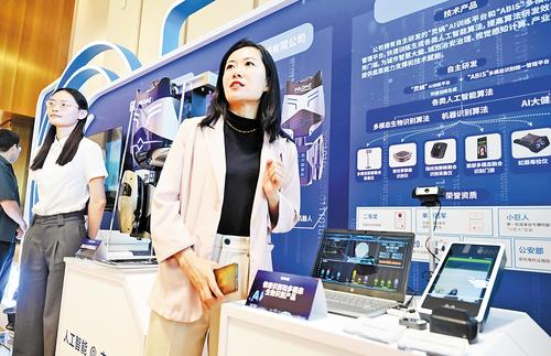 6月10日,雄安新区2025人工智能产业生态创新发展活动启幕,在会场外的人工智能创新发展成果展上,众多科技企业展示人工智能产品。记者刘光昱 摄